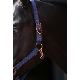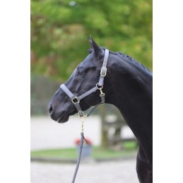 Halster classy marine cob is een klassiek elegant halster.Het halster classy marine cob heeft verstelbare nek- en neusbanden met gespen en een zachte opvullaag. -Gemaakt van slijtvast materiaal en sterke naden-Gemakkelijk te openen en sluiten van het halster met karabijnhaak-solide en elegante fittingen-Metalen oogjes voorkomen dat de gespen losraken