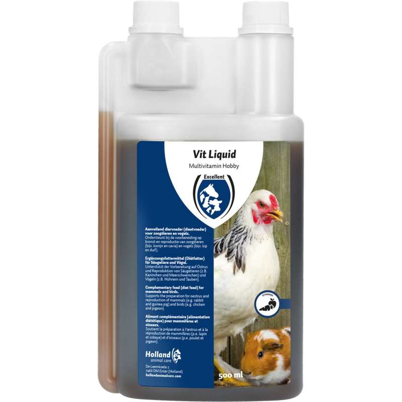 is een vloeibare multivitamine. Vit Liquid Multivitamine ondersteunt bij de voorbereiding op bronst en voortplanting van zoogdieren (bijv. konijn en cavia) en vogels (bijv. kip en duif).