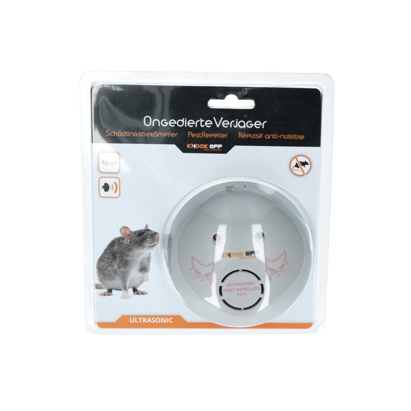 voor het verjagen van muizen, ratten en ander ongedierte door een ultrasoon geluid. Deze Knock Pest ongedierteverjager voor 46 m2 oppervlakte werkt op stroom. Het apparaat werkt zonder giftige stoffen en is niet schadelijk voor mensen en huisdieren.