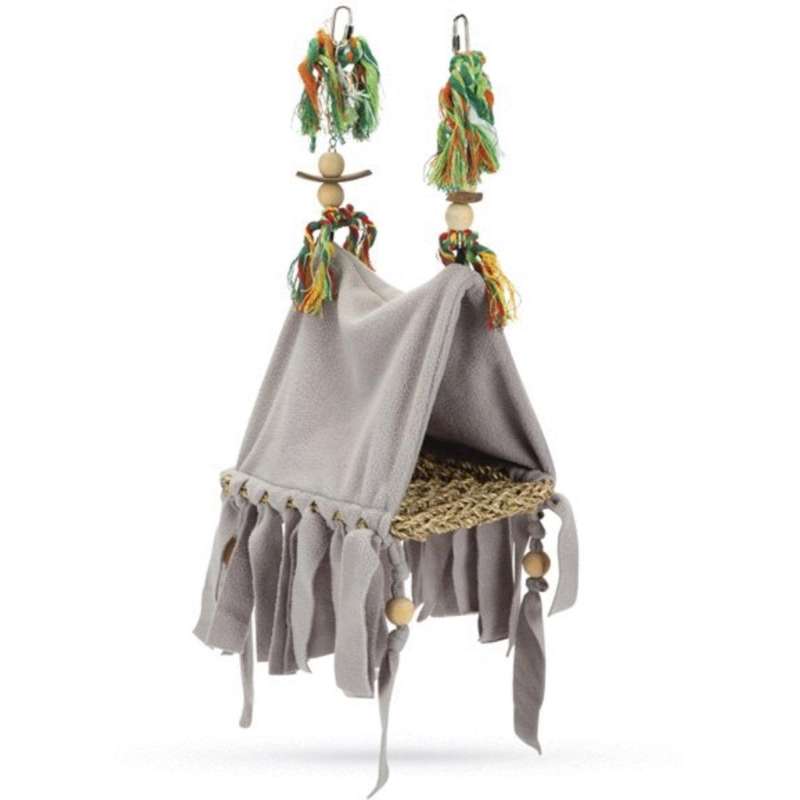 voor in de vogelkooi, geef je jouw vogeltje zijn of haar eigen plekje. Het Beeztees Vogelhuisje Ami grijs 23x13x15 cm heeft iets weg van een tentje gemaakt van stof met een zeegras bodem waar jouw vogel op kan zitten of liggen. Dit vogelhuisje hang je eenvoudig op door middel van de haken. Met dit vogelhuisje geef je jouw vogelkooi een prachtige uitstraling! En, misschien nog wel belangrijker, jouw vogel zal het fantastisch vinden.
